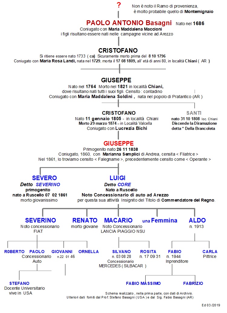 Si ringraziano : Don Gastone Basagni , il Dott. Elio Basagni ed il signor Gerardo Basagni, per le informazioni ricevute in merito a questa prosperosa Diramazione.