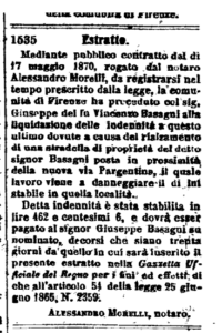 Vediamo che il Sig. Vincenzo Basagni del fu Giuseppe, viene risarcito con la soomma di liere e 5 centesimi, per il rialso di una stradicella p