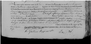 Atto di morte del 02 11 1809 MARIA ANNA moglie di GIUSEPPE BASAGNI , Contadino di San Salvi, morta nella casa al n* 5475, in via Sant Egidio